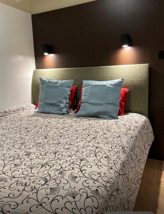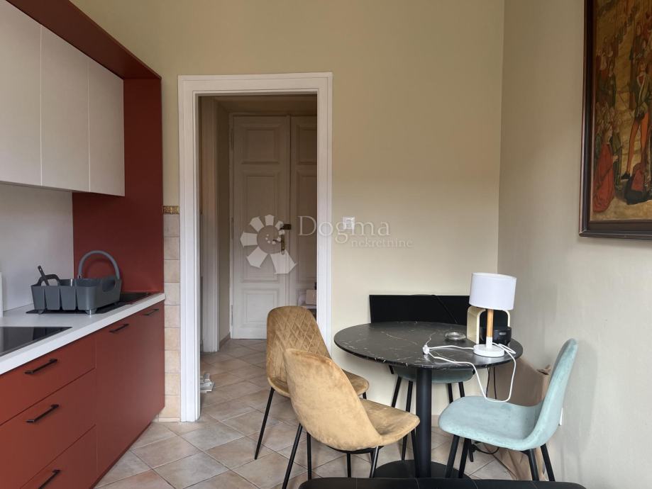Stan se sastoji od prostranog predsoblja, kupaonice te velike sobe koja je podijeljena u noćni dio (spavaća soba) te dnevni open space s kuhinjom. Funkcionalno uređen, šarmantna kombinacija novog i tradicionalnog, s daškom luksuza prošlih vremena, ovaj lijepi stan iznajmljuje se dugoročno od rujna, dok je ljeti u turističkom najmu, no moguće su i kombinacije mjesečnog najma.
