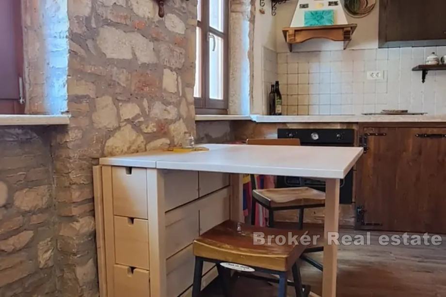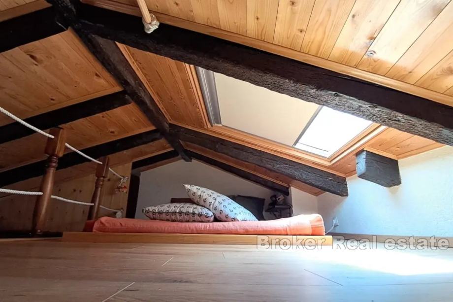 Stan je renoviran, useljiv i opremljen te je postigao savršen sklad između boho stila i elemenata tradicionalne arhitekture. Pogodan je kao jedinica za turistički najam ali i kao oaza za osobni odmor.