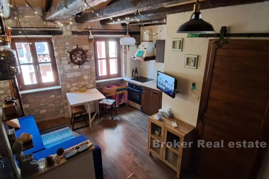 U samom centru Rovinja, nedaleko od mora i od crkve Svete Eufemije, u ulici koja odiše povijesnim ugođajem, prodaje se šarmantan studio apartman stambene površine 26 m2.