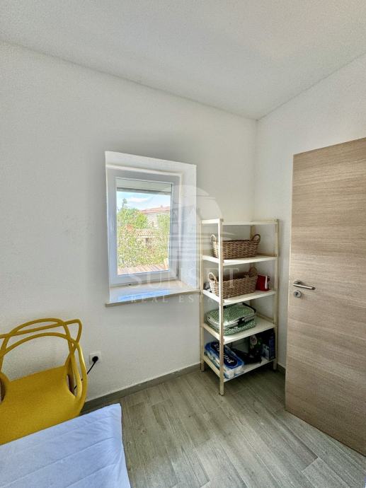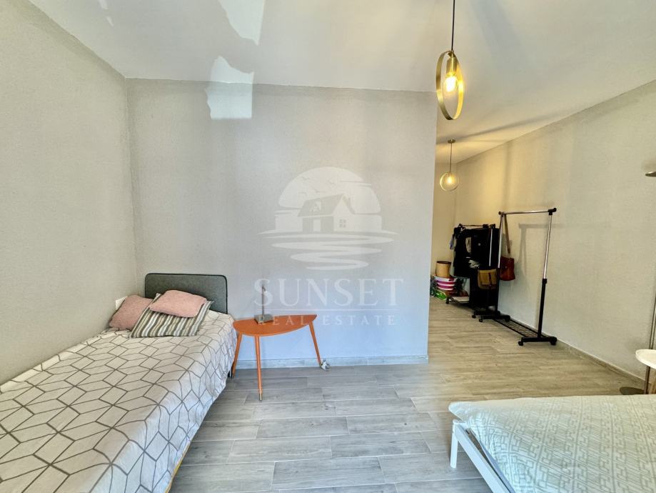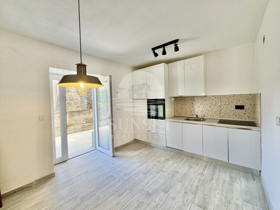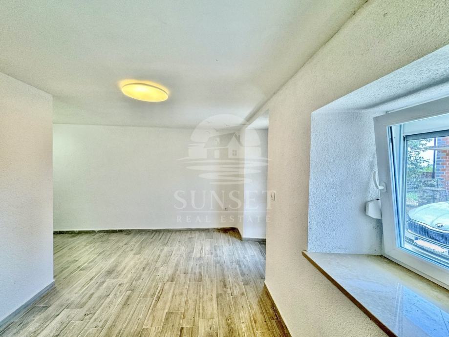Prizemlje čini zasebnu stambenu jedinicu i sastoji se od dnevnog boravka, blagovaonice i kuhinje s izlazom na ljetnu terasu smještenu iza kuće — idealnu za opuštanje i obroke na otvorenom. Tu su i kupaonica te dvije spavaće sobe: jedna prostrana glavna i jedna manja, dječja soba.
