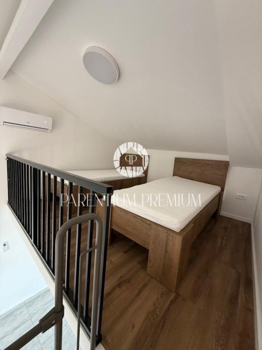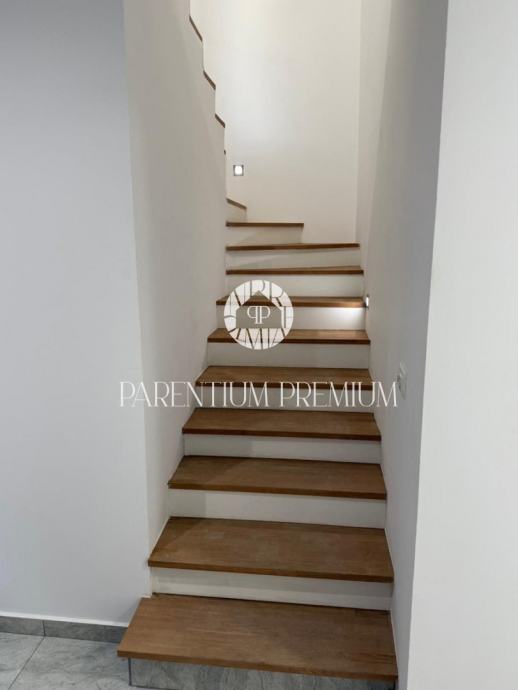 Nekretnina se proteže na tri etaže. U prizemlju se nalaze ulazni hodnik, ostava, kupaonica i dnevni prostor. Na prvom katu smještene su dvije spavaće sobe, svaka s vlastitom kupaonicom, dok se na drugom katu nalazi prostrani dnevni boravak s visokim stropom te galerija s dodatnim ležajevima, idealna za djecu ili goste. Iz dnevnog prostora izlazi se na prostranu terasu površine 30 m² s očaravajućim pogledom na more, s koje se pružaju nezaboravni zalasci sunca – savršeno mjesto za opuštanje i uživanje u toplim mediteranskim večerima.