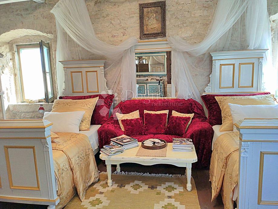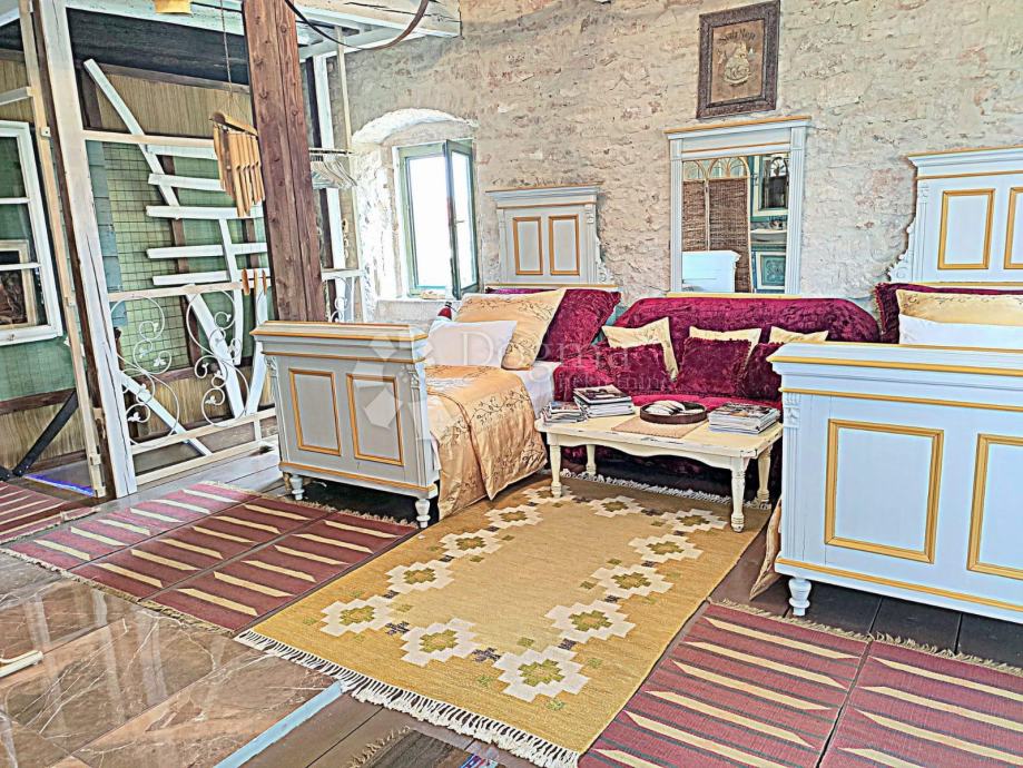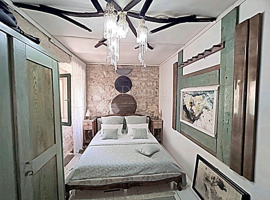 Ljepotica stambene površine 145 m² raspoređena je na prizemlje, kat i visoko potkrovlje, odnosno dnevni i spavaći dio. Dnevni dio sastoji se od prostranog dnevnog boravka sa potpuno opremljenom kuhinjom i blagavaonom. U dnevni dio savršeno je ukomponiran kamin, a na katu nalazimo tri spavaće sobe visokih stropova.