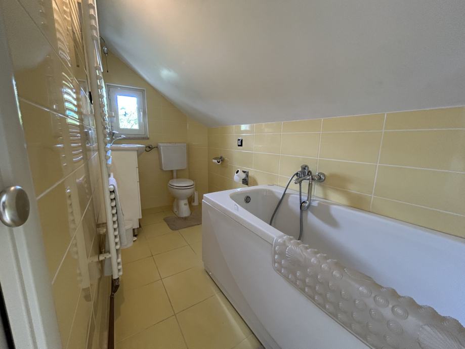Na prodaju je šarmantna kuća s vrtom u mirnom naselju u blizini mjesta Sveti Križ Začretje, Krapinsko-Zagorska županija. Ova kuća nudi razne mogućnosti - idealna je kao vikendica, može se koristiti kao isplativa investicija za turistički najam gostima koji traže mir u prirodi ili kao dom za obitelj. Sastoji se od 2 spavaće sobe, blagovaonice s kuhinjom, hodnika i kupaonice u prizemlju. Prizemlje ima izlaz na prostranu natkrivenu terasu s prekrasnim pogledom na vrt, zelenilo i Medvednicu. Prvi kat se sastoji od dnevnog boravka povezanog s čajnom kuhinjom, spavaće sobe i kupaonice, U podrumu su dvije manje prostorije - jedna je sa šankom, a druga zasebno sa stolom i klupama. Posebno je još odvojen i vinski podrum. Ukupna stambena površina iznosi 120 četvornih metara.