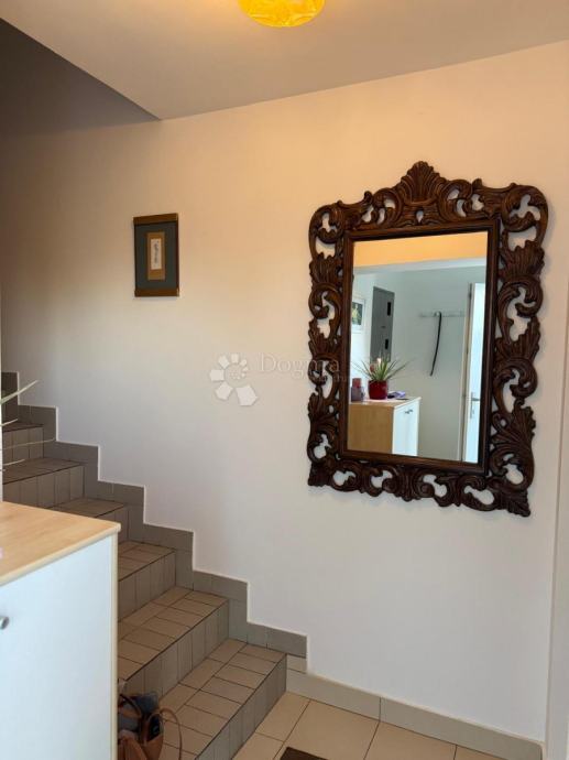 Kuća nudi savršeno raspoređene etaže: u podrumu je garaža s dva parkirna mjesta i praktičnim spremištem, dok se na polukatu nalaze dvije udobne spavaće sobe, od kojih jedna ima vlastiti balkon – mali kutak mira za uživanje u tišini. Tu je i kupaonica s toaletom, pažljivo osmišljena za svakodnevni komfor. Stepeništem se uspinjemo u potkrovlje, gdje se otvara prostrana spavaća soba s očaravajućim panoramskim pogledom i nova kupaonica, koja odiše privatnošću i opuštanjem.