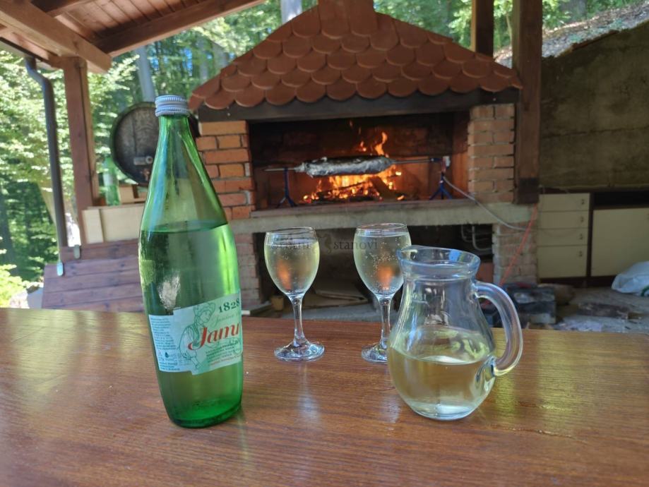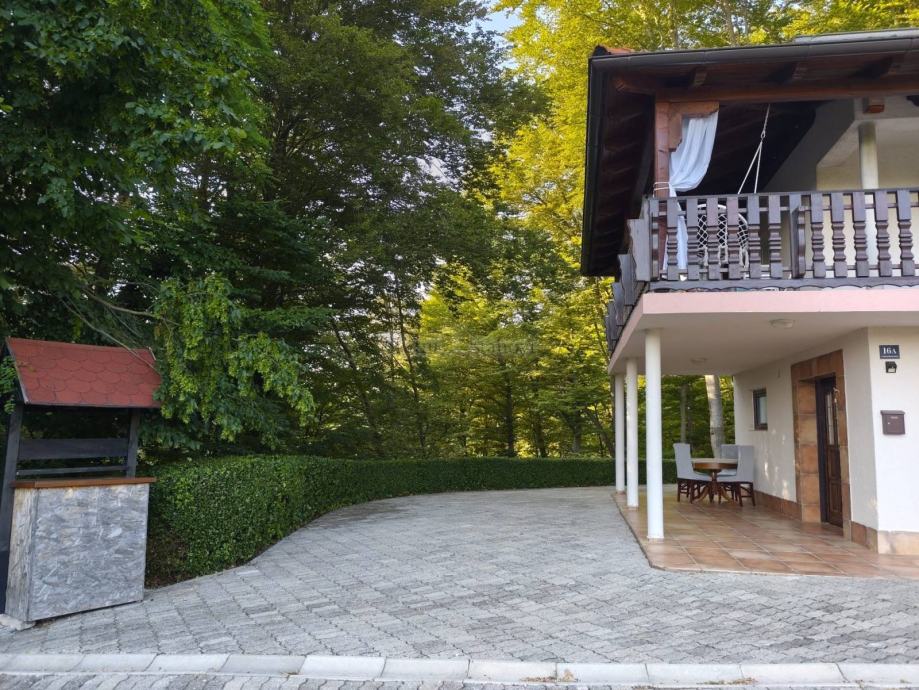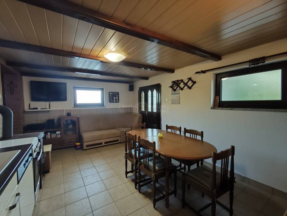 Kuća ima i nadstrešnicu površine cca 15 m² s pečenjarom te 4 parkirna mjesta.