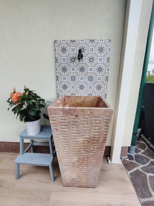 Stan se sastoji od 2 spavaće sobe povezane sa vlastitom kupaonicom i walk-in garderobom, "open space" dnevnog boravka, blagovaonice i kuhinje, čiji akomoditet se nastavlja vanjskom terasom i zelenom okućnicom sveukupne veličine 1318 m2.
