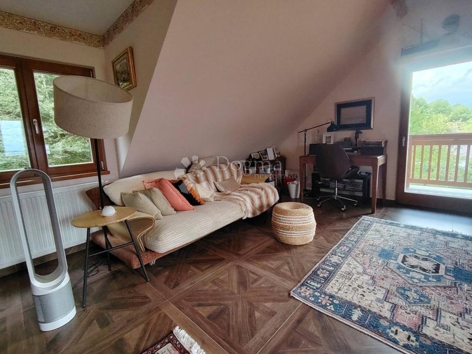 Primjetiti ćete da je ova iznimna kuća sinonim za kvalitetu materijala i završne obrade, najmodernije unutarnje opreme rađene po mjeri i izbora materijala; drvena stolarija s troslojnim staklom lijepo se uklapa u koncept energetsko-pasivne kuće. Zahvaljujući vrhunskoj vanjskoj stolariji, podnom grijanju putem dizalice topline i termo vanjskoj fasadi, dodatnoj izolaziji zidova, ovom objektu pripada A+ energetski certifikat.