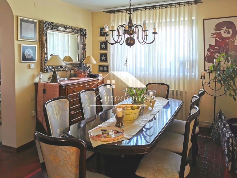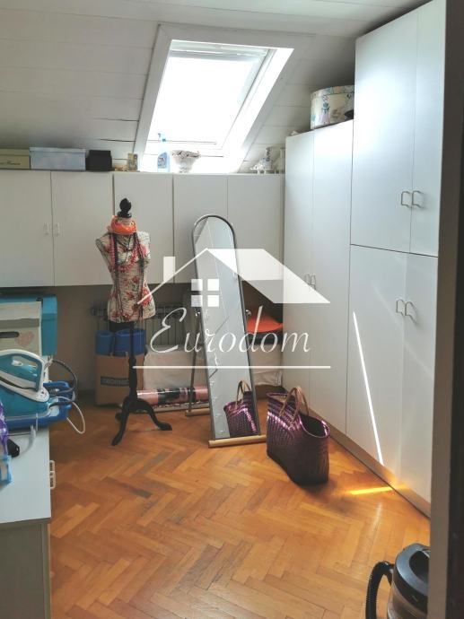 Podrum se sastoji od 5 prostorija i WC-a, dok se u prizemlju nalaze kuhinja, blagovaonica, dnevni boravak, kupaonica te izlaz na terasu od 25 m2 i prekrasan vrt. Na visokom potkrovlju nalaze se 4 spavaće sobe, velika kupaonica i balkon, pružajući dodatnu privatnost i udobnost.