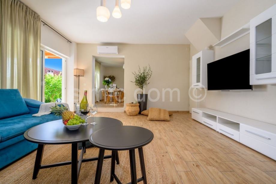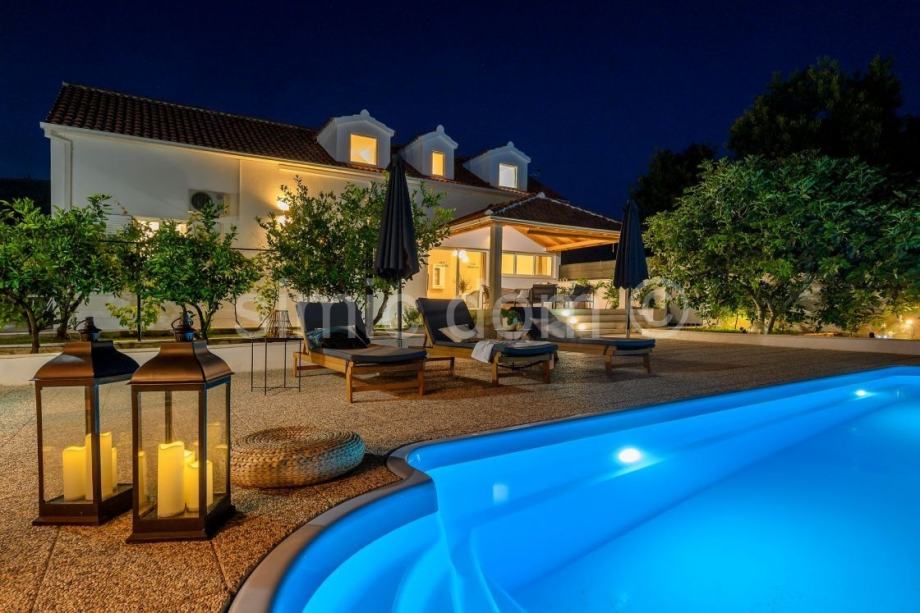 Posredujemo u prodaji šarmantne vile s prostranom okućnicom i bazenom, na odličnoj lokaciji na otoku Braču. Vila se prostire etažama prizemlja i prvog kata. Stambene je površine od 196 m2 te je smještena na parceli od 520 m2. Sastoji se od dnevnog boravka, kuhinje s blagovaonicom te četiri spavaće sobe od kojih svaka ima svoju zasebnu kupaonicu. U sklopu okućnice nalazi se terasa s bazenom, prostorom za sunčanje te pomoćnim objektom koji služi kao ljetna kuhinja i odličan prostor za proslave i druženja, a koja sadrži i kamin. Vila je u potpunosti uređena i namještena, a moguće je parkirati i nekoliko automobila. S obzirom na odličnu lokaciju, kapacitet i sadržaj koji posjeduje, ova vila odličan je izbor investicije. Vlasništvo uredno.
