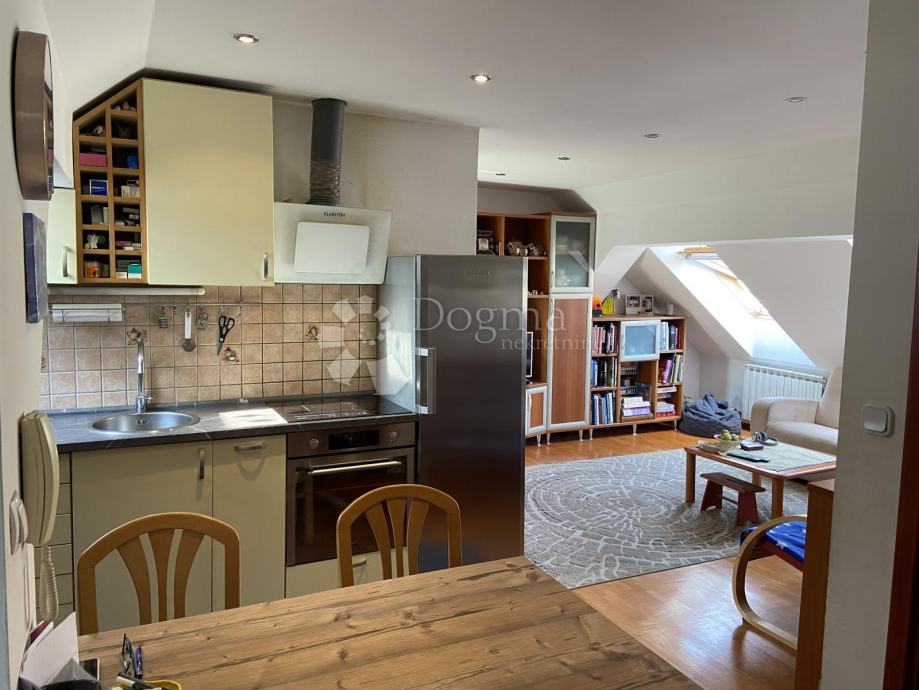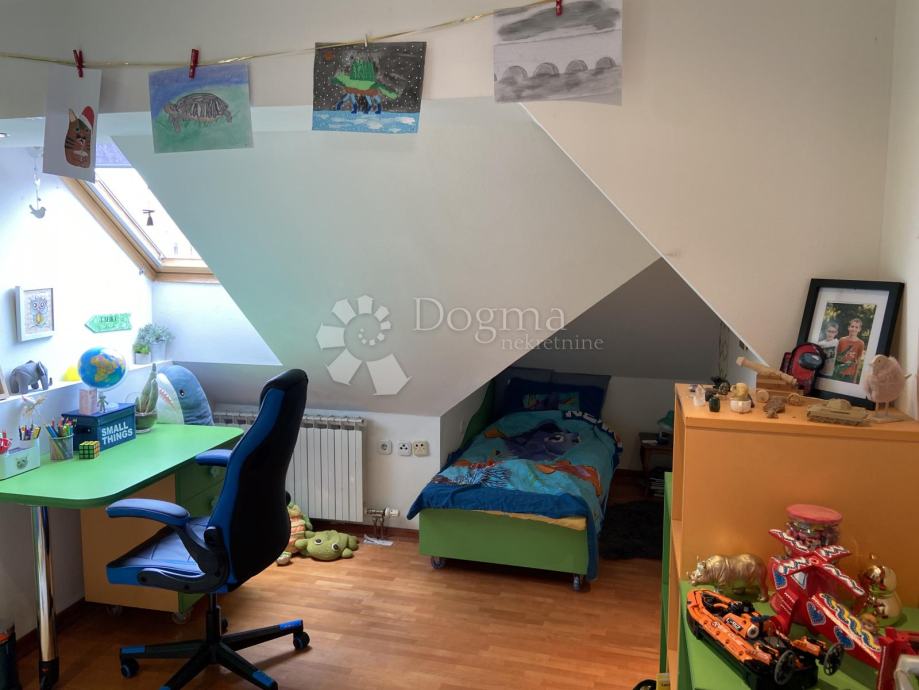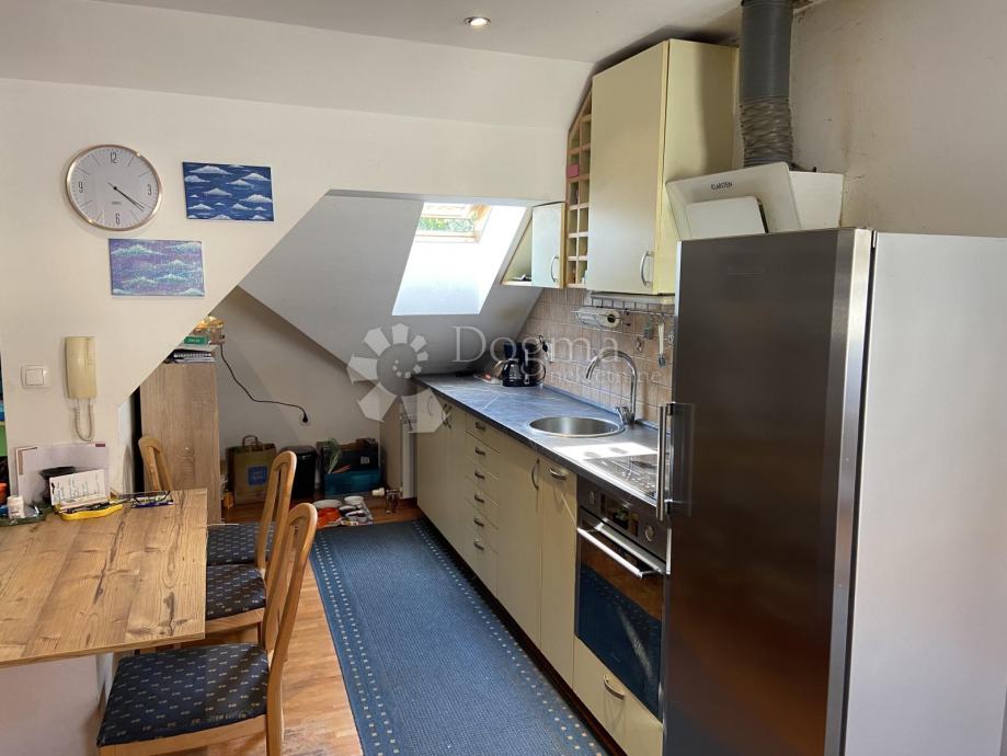 U potkrovlju se nalazi potpuno uređen i obnovljen stambeni prostor s otvorenom kuhinjom, dnevnim boravkom i kupaonicom. Dvije spavaće sobe jedna dječja i jedna master. Kupaonica je kompletno renovirana.