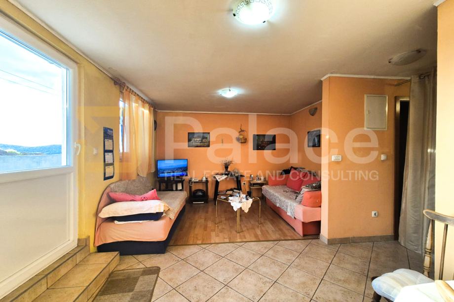 Drugo stepenište vodi na drugu etažu, koja obuhvaća kuhinju s blagovaonicom, prostrani dnevni boravak, modernu kupaonicu i praktičnu ostavu. Posebnu vrijednost stanu daje prostrana terasa s koje se pruža spektakularan pogled na Šibenik, šibenski arhipelag i more – savršeno mjesto za uživanje u dalmatinskom suncu i opuštanju.