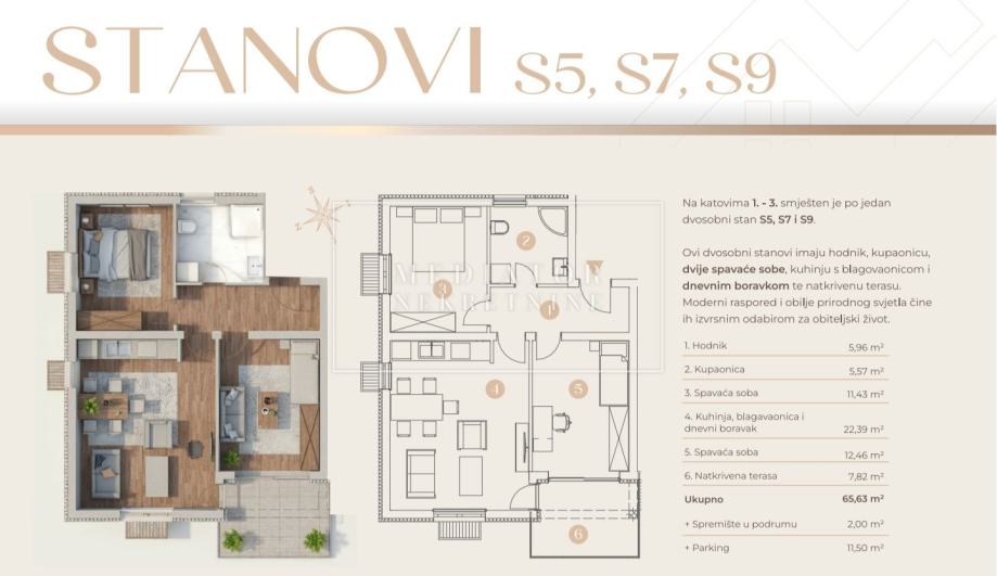 Stan će biti opremljen modernim sustavom grijanja putem dizalice topline s podnim grijanjem, u dnevnom boravku biti će klima, a uz stan dolazi i drvarnica te vanjsko parkirno mjesto.