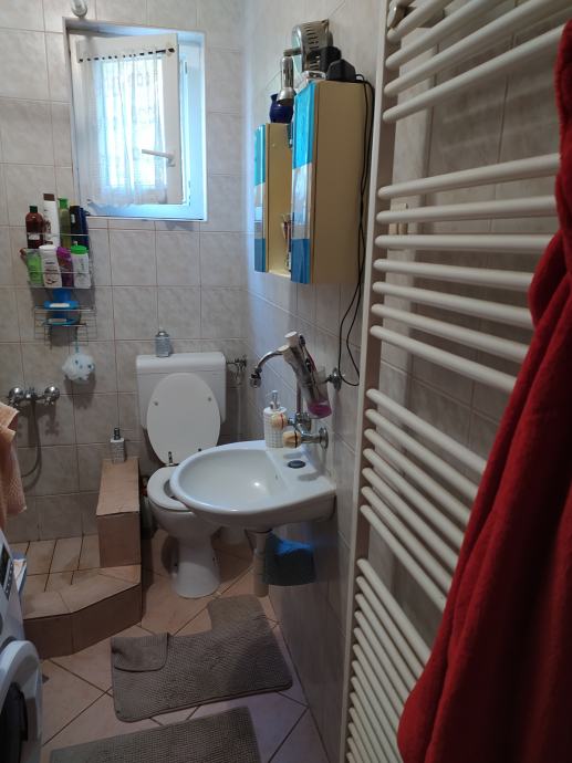 Kuća je kvalitetne gradnje, s monta stropom, grijanje je centralno radijatorsko na kombi plinski bojler, a u dnevnoj sobi ima i kamin na kruto gorivo.