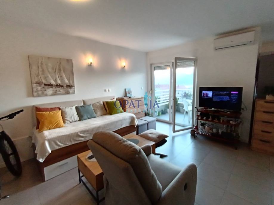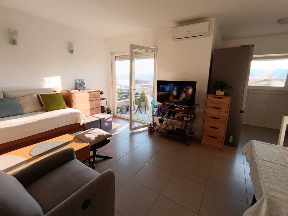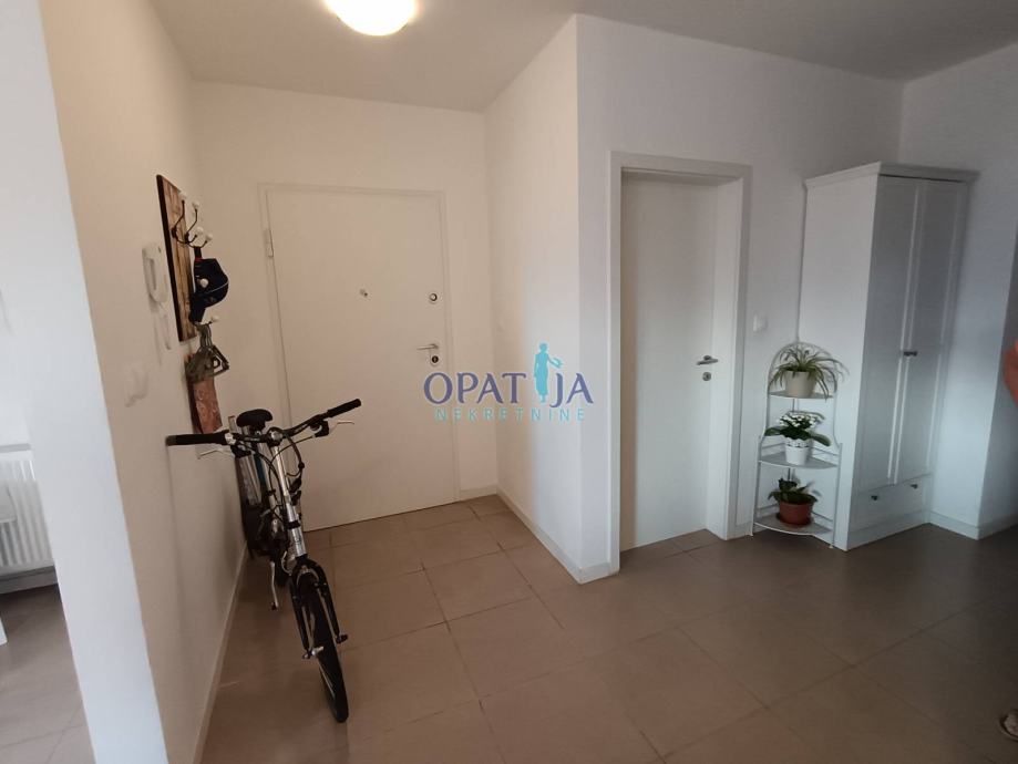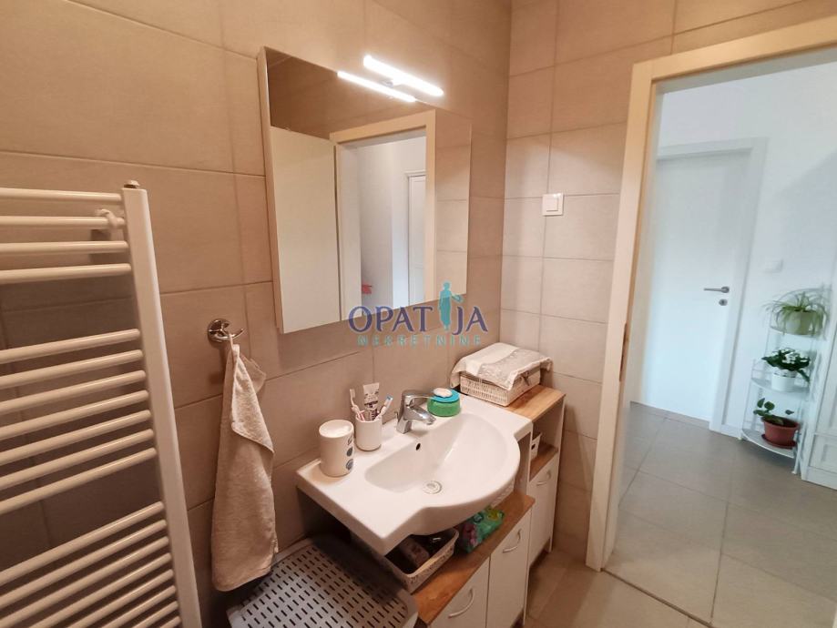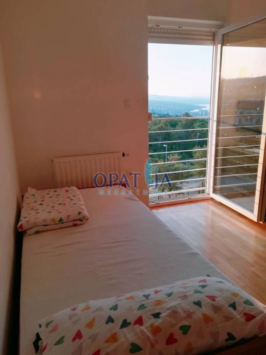Prodaje se predivan stan smješten na trećem katu moderne zgrade s liftom, okružene lijepo uređenom i ograđenom okućnicom koja se zatvara rampom na daljinsko upravljanje, pružajući dodatnu sigurnost i privatnost. Već pri samom ulasku u zgradu, čistoća i urednost zajedničkih prostora stvaraju dojam ugodnog i kvalitetnog stanovanja. Do stana se dolazi liftom, a za one koji preferiraju stepenice, tu je i uredno održavano stubište. Stan se sastoji od ulaznog prostora koji vodi u hodnik, iz kojeg se pristupa dvjema spavaćim sobama – jedna prostranija, dok druga, manja, ima francuski balkon. Iz obje sobe pruža se otvoreni pogled na istočni dio Kvarnera, iznad kojeg se uzdižu Platak i ostali naši prekrasni vrhovi, stvarajući prizor koji svakodnevno oduzima dah. Kupaonica s WC-om je izuzetno prostrana. Dnevni boravak, blagovaonica i kuhinja čine skladan, svijetao prostor ispunjen prirodnim svjetlom, a s terase se pruža očaravajući panoramski pogled na Kvarner. Uz stan dolazi i spremište u prizemlju zgrade, kao i natkriveno parkirno mjesto površine 7 m². Unutar ograđene okućnice nalaze se dodatna vanjska parkirna mjesta, pogodna za goste ili drugi automobil. Ova nekretnina nudi savršen spoj udobnosti, sigurnosti i atraktivne lokacije, idealna za miran život uz sve potrebne sadržaje u neposrednoj blizini.