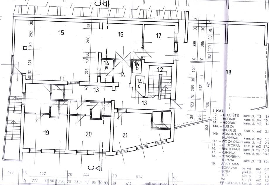 I. KAT; 222,33 m2 (199,88 + terasa 89,81 x 0,25):