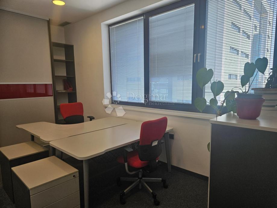 Ovaj poslovni prostor površine 131 m² izuzetno je lijepo uređen i prilagođen suvremenim poslovnim potrebama. Sastoji se od pet funkcionalnih prostorija, uključujući prostranu salu za sastanke. Namješten je elegantnim i praktičnim namještajem koji uključuje ormariće, stolove i stolice, čime je odmah spreman za korištenje. Aluminijski prozori opremljeni žaluzinama i električnim podizačima roleta omogućuju izvrsnu kontrolu svjetlosti i privatnosti, dok stropni konvektori osiguravaju optimalnu temperaturu tijekom cijele godine.
