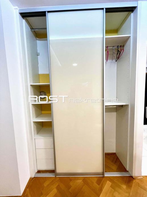 STAN SE SASTOJI od ulaznog prostora namještenog sa prostranim ugradbenim garderobnim ormarom, atraktivne kuhinje sa pultom i dvije visoke stolice, klimatiziranog dnevnog boravka sa blagovaonicom u jednoj funkcionalnoj cjelini i IZLAZOM NA ZATVORENEU LOĐU, hodnika sa ugradbenim garderobnim ormarom, spavaće sobe s bračnim ležajem i prostranim ugradbenim garderobnim ormarom, treće sobe s garderobnim ormarom i komodom (namještanje sobe sa ležajem je moguće u dogovoru s najmoprimcem), kupaonice s tuš kabinom i WC-om, ZASEBNOG WC-a sa perilicom za rublje i ZATVORENE LOĐE.