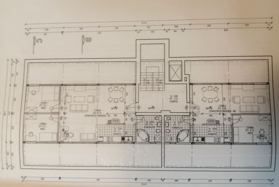 potkrovlje - površina 150,86 m2 (2 stana - 52,08 m2 i 83,12 m2)