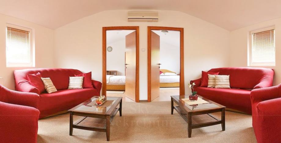 trenutno je raspoređen u 13 soba s kupaonicom, 2 studio apartmana te ured.