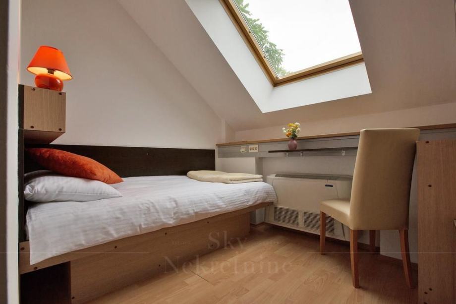8 jednokrevetnih soba s kupaonicom, 7 dvokrevetnih soba s kupaonicom na 3. katu, te 2 apartmana za 4 osobe u potkrovlju.