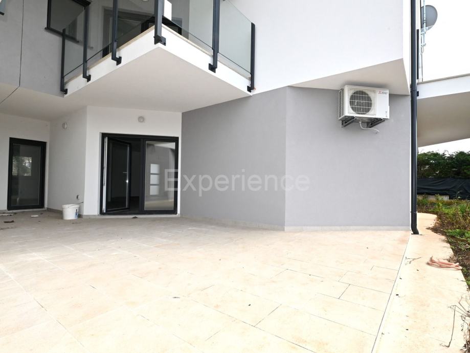 Savudrija – cca. 500 m od uređen plaže, u iznimno mirnom ambijentu na prodaji je trosoban stan u novogradnji, površine 64,20 m². Stan se nalazi u prizemlju stambene zgrade sa ukupno 8 stambenih jedinica. Sadrži: predsoblje, otvoreni i svijetao prostor u kojem su smješteni dnevni boravak, kuhinja i blagovaonica sa izlazom na terasu, dvije spavaće sobe i kupaonicu. Stanu također pripada vrt (cca. 150 m²), garaža (12,10 m²) i spremište (10 m²) u podrumu zgrade.