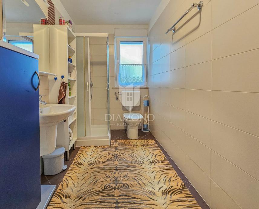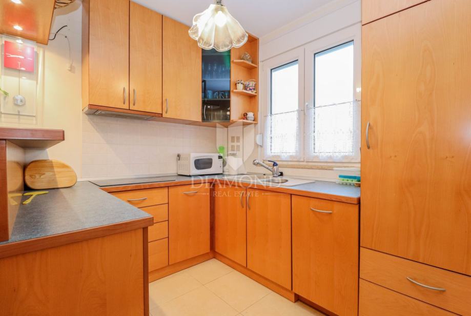 Stan se nalazi na 1. katu stambene zgrade. Ukupna površina stana iznosi 67.52 m2. Ulaskom u stan dolazi se do dnevnog boravka s kuhinjom i blagovaonicom iz kojih se izlazi na prostranu terasu površine 7.97 m2. Kroz hodnik dolazi se do 2 spavaće sobe i kupaonice. U podrumu zgrade smješteno je i spremište površine 5.22 m2 idealno za skladištenje stvari a parkirno mjesto nalazi se ispred zgrade. Stan je kvalitetne gradnje s grijanjem i hlađenjem na klima uređaje, ali stan ima i dimnjak pa se po želji može grijati i na peć na drva ili pelete. Stan pripada i zajednički bazen na korištenje.