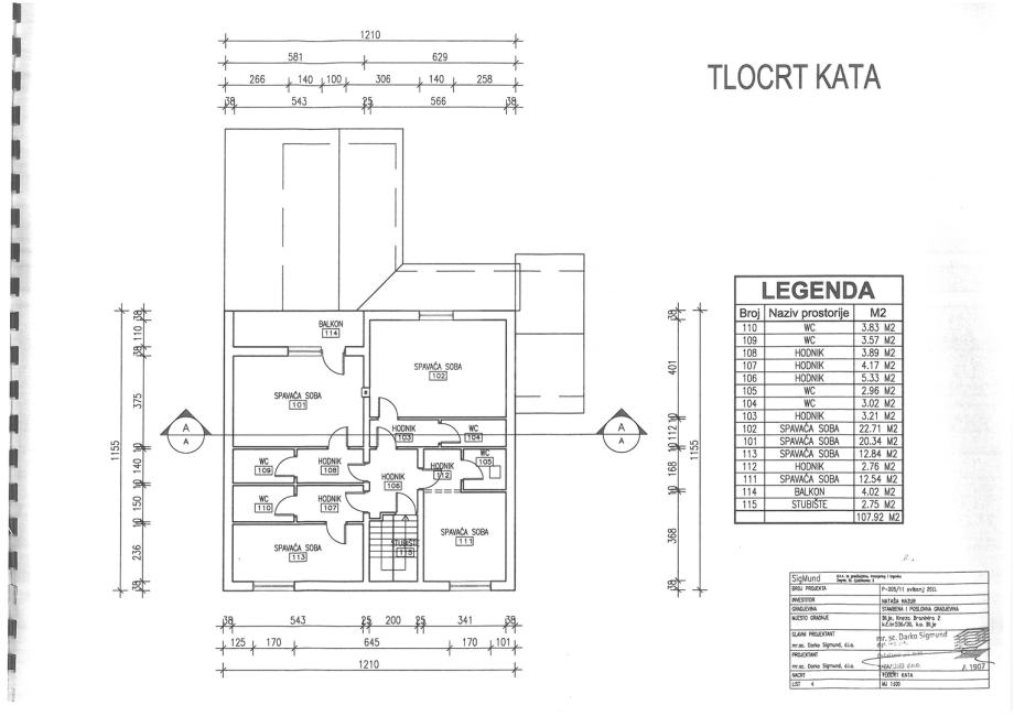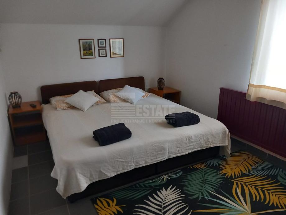 - na katu su 4 dvokrevetne sobe svaka opremljena vlastitom kupaonom, klima uređajem, TV+SAT, bežičnim internetom, površine etaže 107,92 m2.