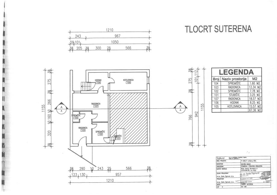 - u suterenu nalazi obrt s radionom i trgovinom, površine etaže 67,36 m2,