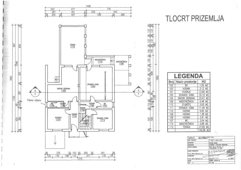 - u prizemlju je smješten stan vlasnika, te se sastoji od dnevne sobe, dvije spavaće sobe, velike kuhinje, dva sanitarna čvor te velika ostakljena terasa s izlaskom na dvorište za druženje i blagovanje, površine etaže 146,98 m2,