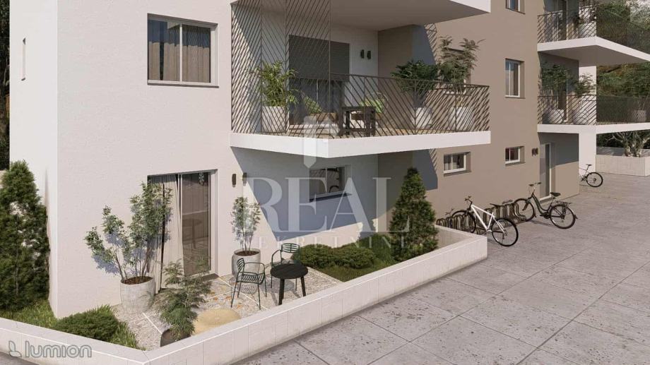 Stan na prvom katu ukupne površine 66 m2 plus terasa 19,87. Nekretnina se sastoji od kuhinje s blagovaonicom dnevnog boravka , dvije spavaće sobe , kupaonice te odvojenog wc-a i ostave. Stanu pripadaju dva vanjska parking mijesta te su uključena u cijenu.