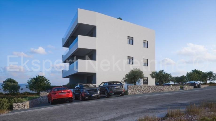 Seget Donji,komforan dvosoban stan 66 m2 u novogradnji,na prvom katu ,jug-istok-sjever orijentiran,sa velikom lođom (13.5 m2) sa koje ima otvoren pogled na more i otoke u zgradi na odličnoj i mirnoj lokaciji udaljenoj 1100 m od mora i plaže.Stan ima dvije spavaće sobe,hodnik, kupatilo,ostavu,kuhinju sa blagovaonicom i dnevni boravak te veliku lođu (13.5 m2) sa kojeg ima otvoren pogled na more . Stanu pripada i jedno vanjsko parking mjesto.Gradnja je u fazi završnih radova a planirani dovršetak je ljeto 2026.g.Odlična i mirna lokacija,1100 m udaljena od mora i uređene plaže. Kvalitetna gradnja(pvc stolarija sa troslojnim staklima,velike klizne stijenke,električne rolete,komarice, podno grijanje u cijelom stanu, klima, kvalitetna keramika,itd..).Vlasništvo uredno.Plaćanje po fazama gradnje.
