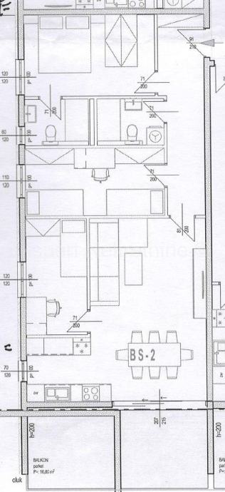 Seget Donji,komforan dvosoban stan 96 m2 (79 m2 stan plus balkon 17m2) u novogradnji sa liftom,na prizemlju ,južno orijentiran,sa velikom lođom(17 m2) sa koje ima pogled na more u zgradi na odličnoj i mirnoj lokaciji udaljenoj samo 200 m od mora i plaže.Stan ima dvije spavaće sobe od kojih jedna sa vlastitim kupatilom,hodnik, kupatilo,kuhinju sa blagovaonicom i dnevni boravak te veliku lođu (17 m2) sa koje ima lijep pogled na more .