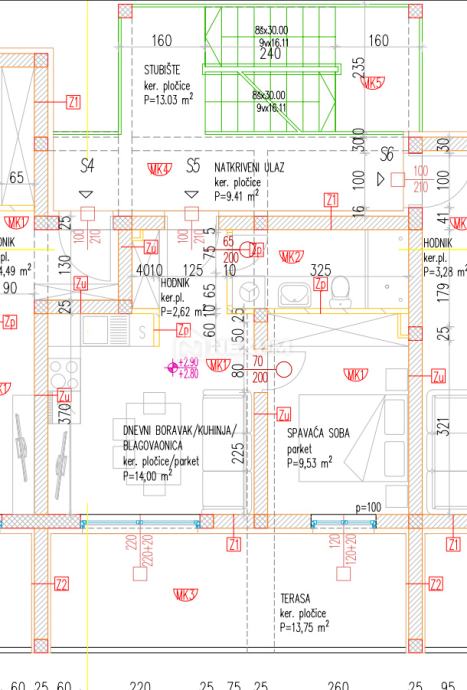 dnevnog boravka s blagovaonicom i kuhinjom (14,00 m²),