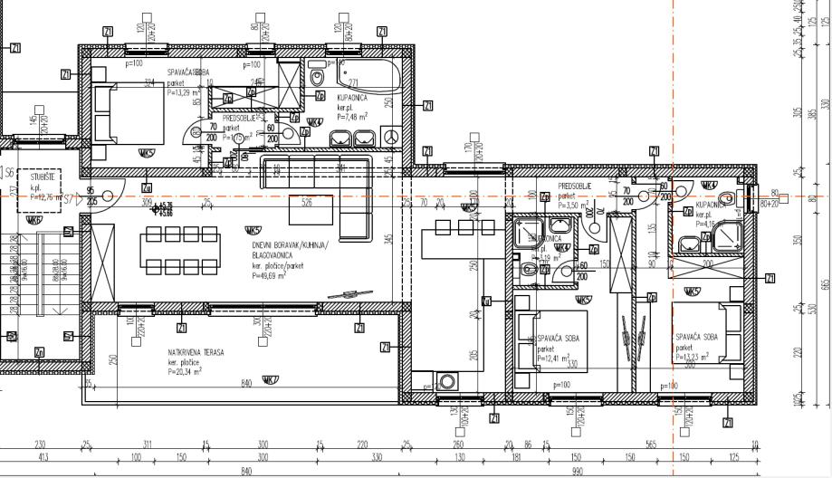- natkrivena terasa, 20,34 m² (neto 10,17 m²)