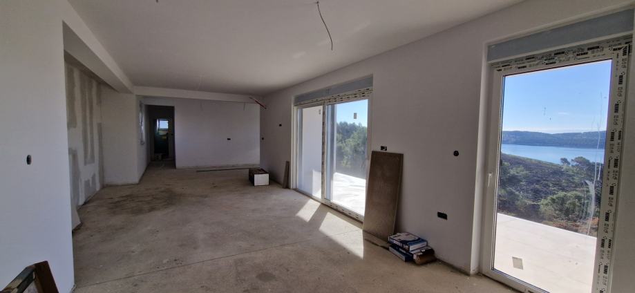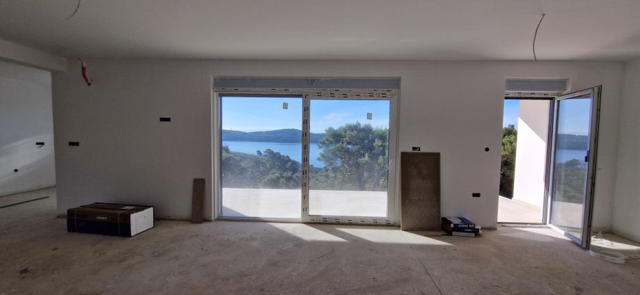 Seget Donji, a modern new building located in an attractive location, surrounded by beautiful nature with a view of the sea. The building consists of a total of 7 exclusive apartments, carefully designed according to the modern concept of space planning and decoration. The apartments provide a high standard of living, with elegant design and functional layouts. The property is located in the immediate vicinity of all necessary facilities for a pleasant everyday life, such as shops, restaurants and beaches, which makes it an ideal place for housing or investment. Completion of the building is planned for the first quarter of 2025.