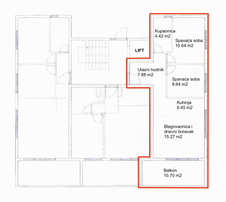 Stan ukratko: 53.30 m2 unutarnji prostor, 10.70 m2 natkriveni balkon, 12.50 m2 parkirno mjesto, za 61.15 m2 neto stambenog prostora s koeficijentima.