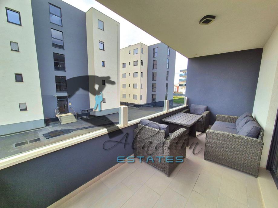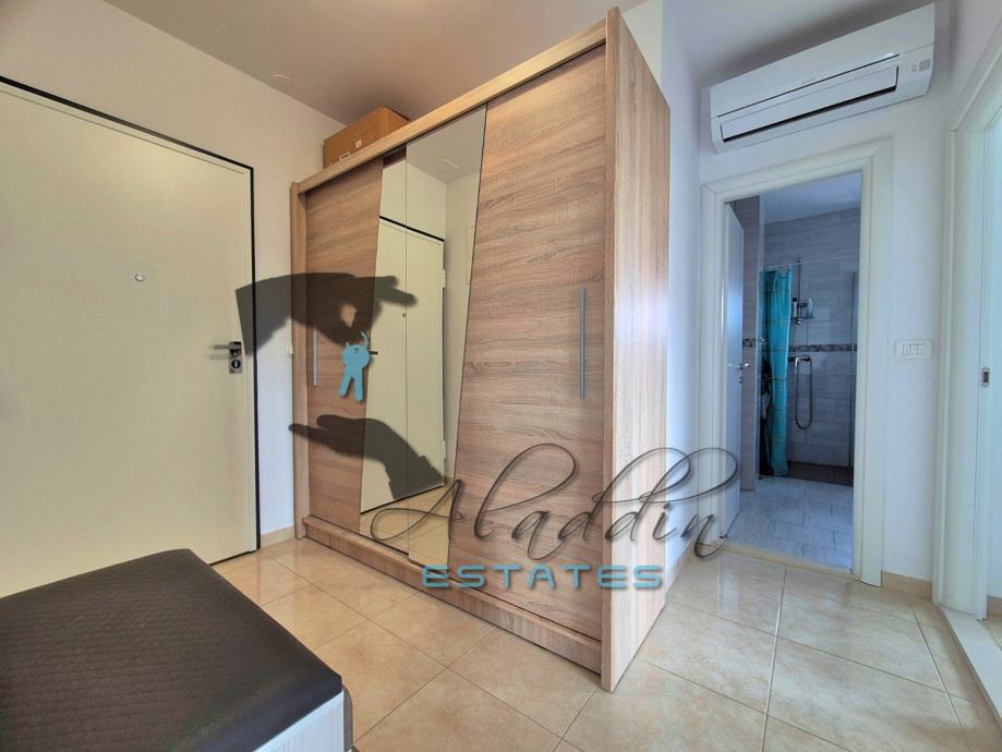The apartment is exceedingly well equipped, a powerful air conditioning unit and underfloor heating in the bathroom ensure a pleasant atmosphere, there is also 5G wireless internet (with optical internet connection available), internet television, intercom, dishwasher and washing machine, excellent PVC carpentry with triple-layered insulating glass, electric shutters on all windows and balcony doors and elegant ceramic tiles. The construction is of very high quality, with many details, first-class thermal and hydro insulation and made to last. The apartment is fully and tastefully furnished, including top-quality kitchen with top-notch Bosch appliances. It is in superb condition, designed and tailored to a person’s needs, exceptionally well maintained and preserved, without the slightest defects and practically new. The building also offers a swimming pool for its residents.