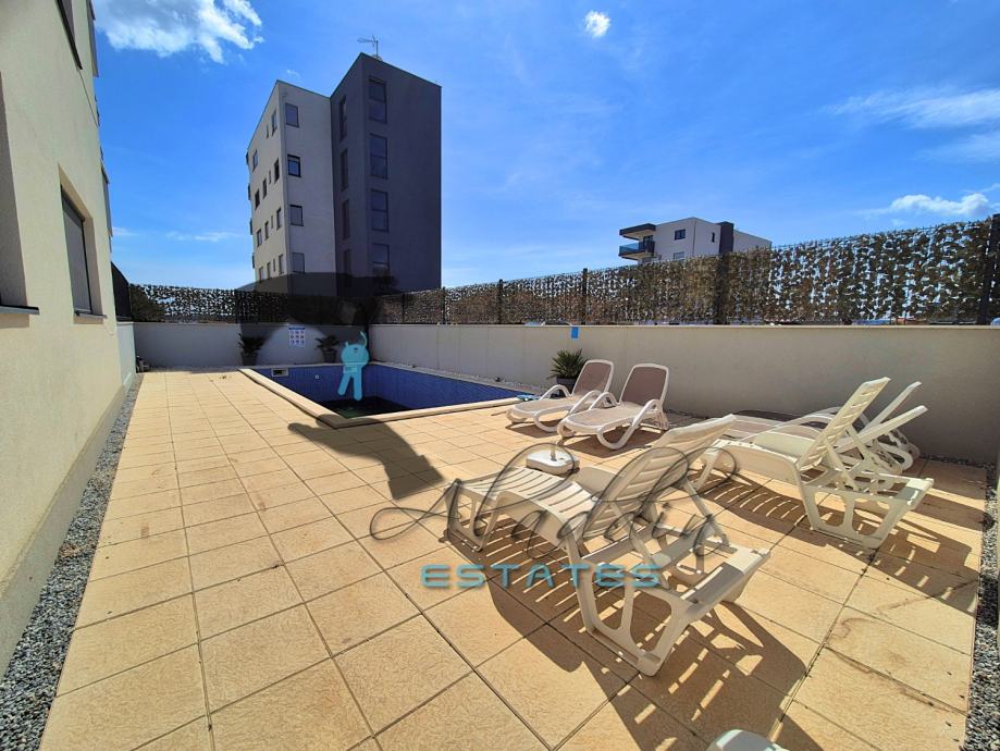 Stan je odlično opremljen, za ugodan se ambijent brinu snažan klima uređaj i podno grijanje u kupaonici, tu je i 5G bežični internet (s dostupnim priključkom optičkog interneta), internet televizija, parlafon, perilice posuđa i rublja, izvrsna PVC stolarija s troslojnim izo-staklima, električne rolete na svim prozorima i balkonskim vratima te elegantne keramičke pločice. Gradnja je vrlo kvalitetna, s mnogo detalja, prvorazredne termo i hidro izolacije i odrađena da traje. Stan je potpuno i osobito ukusno namješten, uključujući vrhunsku kuhinju s prvoklasnim Bosch uređajima. U izvanrednom je stanju, osmišljen i izveden baš po mjeri čovjeka, izuzetno održavan i očuvan, bez i najmanjih nedostataka te praktički nov. U sklopu zgrade se nalazi i zajednički bazen za stanare.