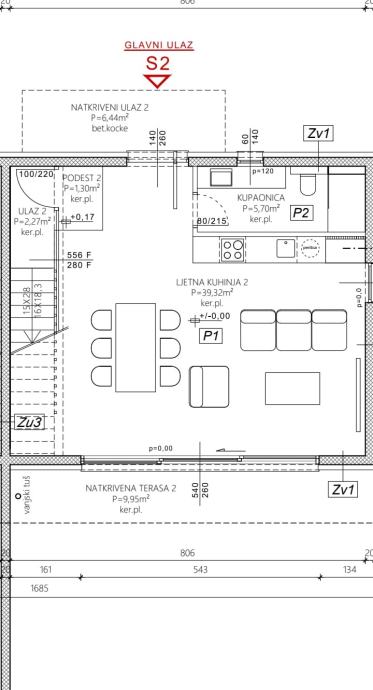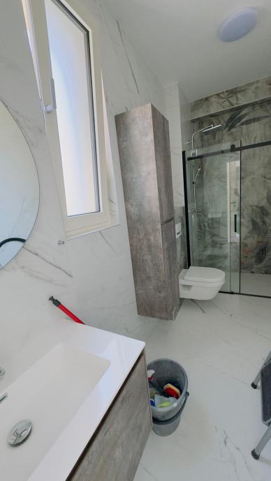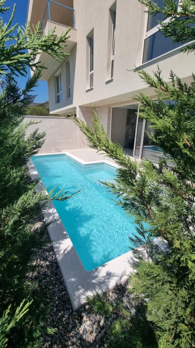 Posredujemo u prodaji dvojne novoizgrađene kuće sa grijanim bazenom. Kuća je površine cca 200m2, a sastoji se od prizemlja i 2 kata. Ista je koncipirana na način da je u prizemlju smješten prostor pogodan za ljetni period življenja sa prostranom ljetnom kuhinjom sa svim aparatima, dnevnim dijelom sa blagovaonicom, manja ostava i kupaonica. Iz tog dijela kuće izlazi se na terasu i bazen. Kroz kuću se stubištem dolazi na gornju etažu koja je koncipirana kao dvoetažni trosobni stan. Na 1 katu su smještene 3 spavaće sobe, od toga veća spavaća soba ima svoju kupaonica i na katu je zasebna prostrana kupaonica, te prostor u kojem je odvojena praonica rublja. Na 2 katu kuće prostire se prostrana kuhinja sa dnevnim dijelom, blagovaonicom i lođom sa koje se pruža pogled na more. Plaža je udaljena svega cca 5 minuta hoda od kuće. Nekretnina se prodaje u viđenom stanju. Cijena na upit!!