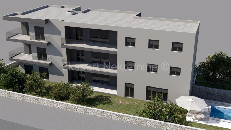 Zgrada je u fazi grubih građevinskih radova,a planirani dovršetak zgrade je kraj 2025.g.Kvalitetna gradnja (pvc stolarija,klima,podno grijanje,el.rolete,keramika po odabiru kupca kao i sanitarije itd...).Plaćanje po fazama gradnje.Mirna lokacija.
