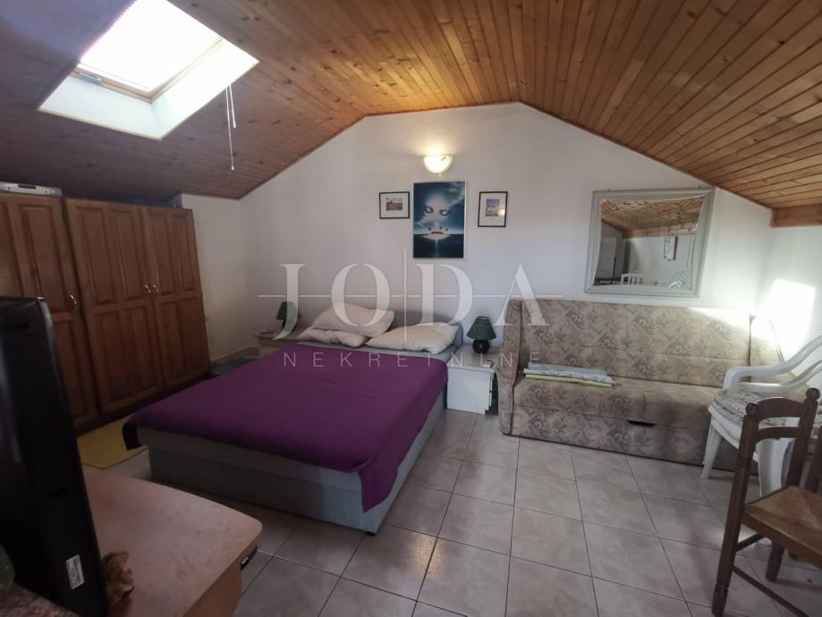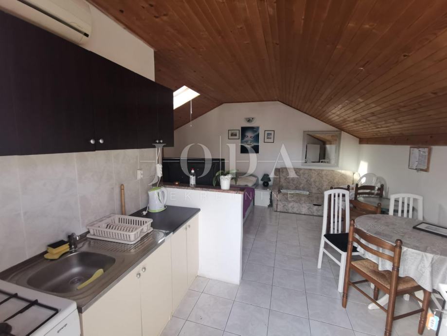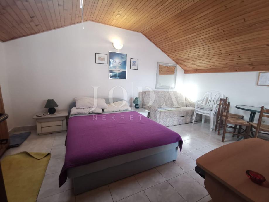 U centru mjesta 50 metara od mora ,prodaje se studio apartman na vrhu dvokatnice sa tri stana.