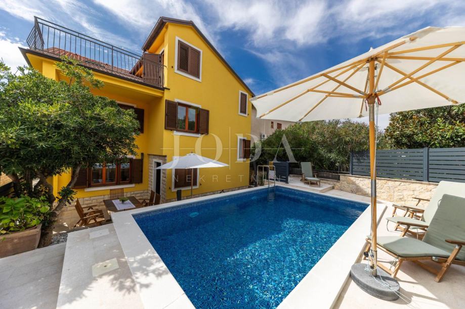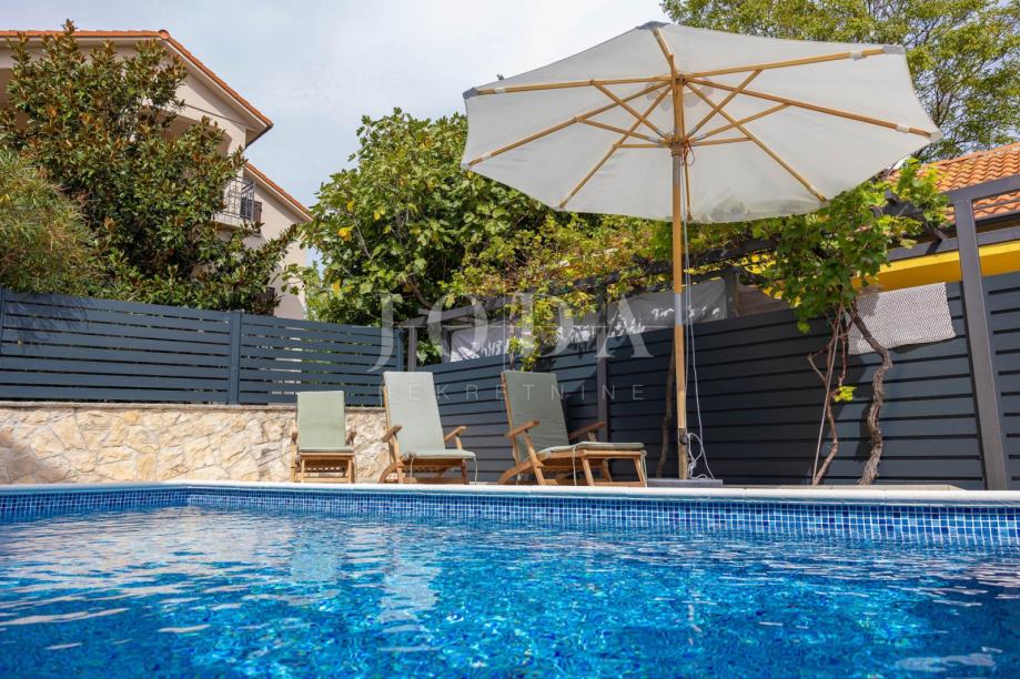 U centralnom dijelu dvorišta je smješten grijani bazen,dok je sa prednje strane velika sjenica sa roštiljom i prostorom za druženje.