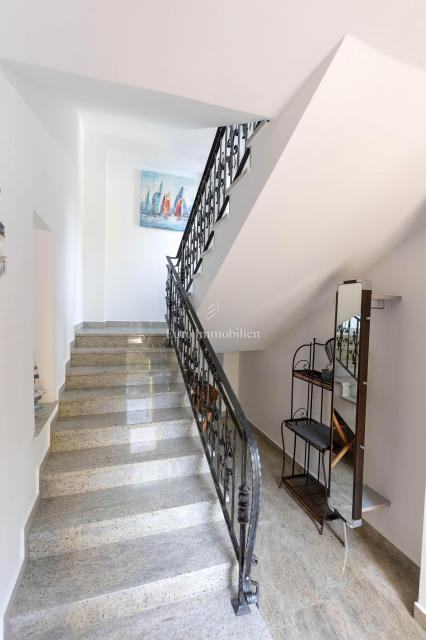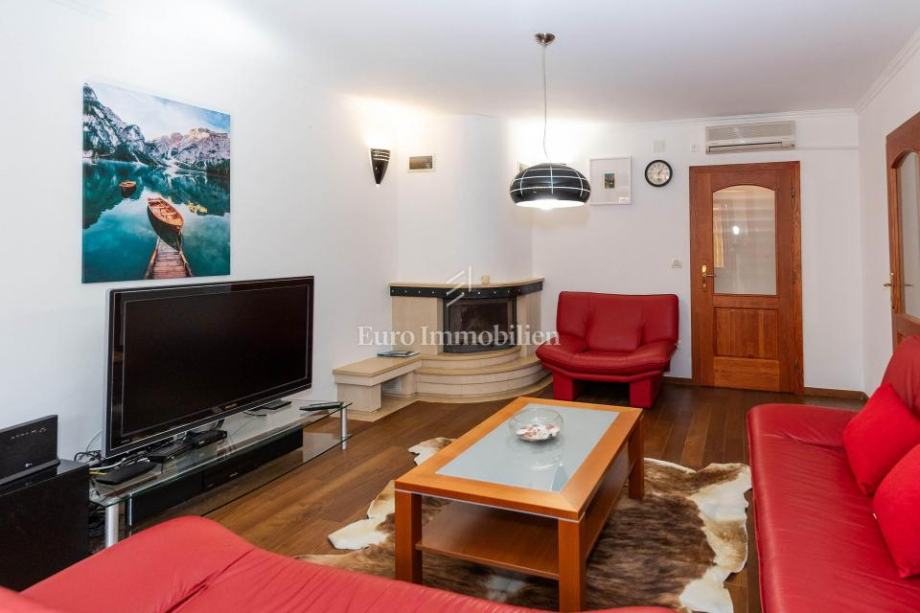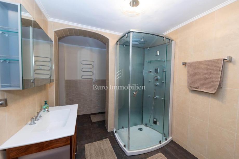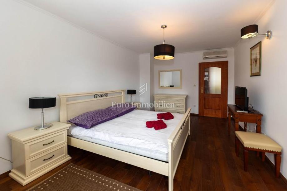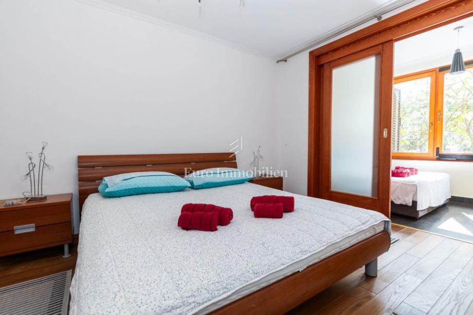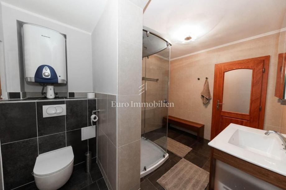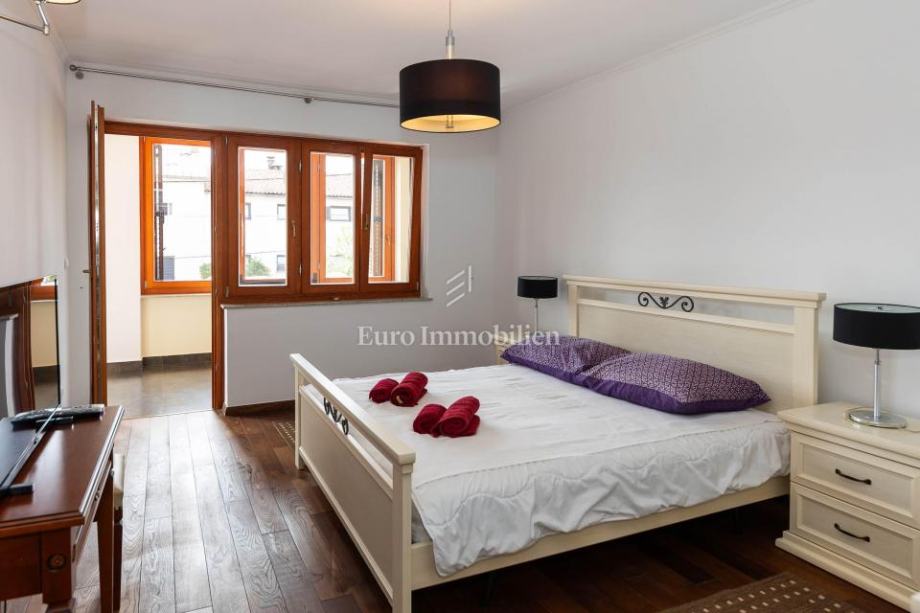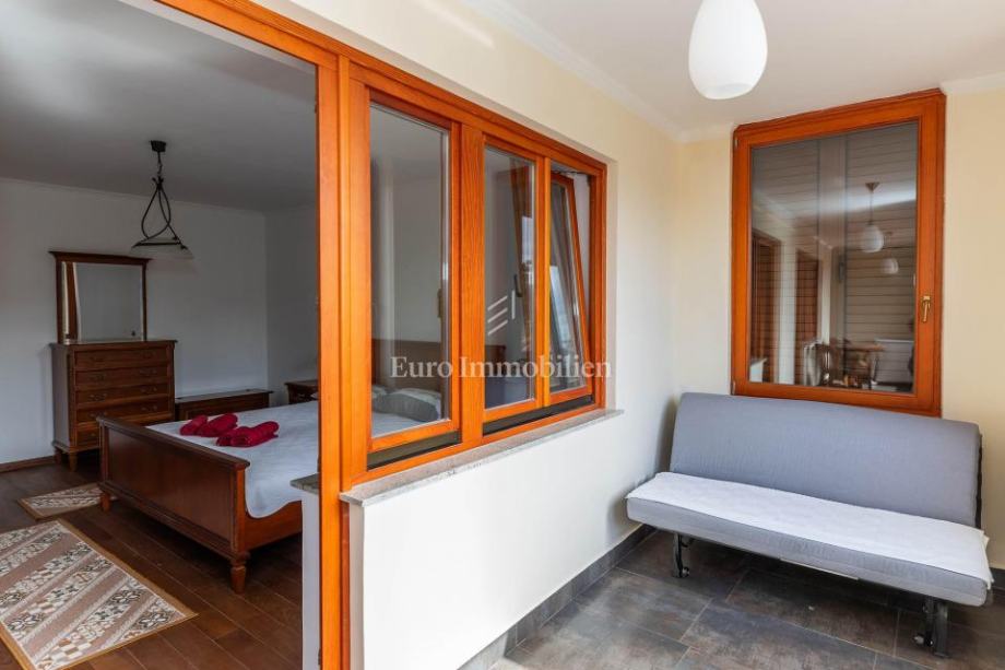 Veća kuća sastoji se od tri etaže. Na prve dvije etaže nalaze se komforni dvosobni stanovi, dok je u potkrovlju smješten iznimno prostran studio apartman s dva balkona. Kuća je potpuno opremljena i namještena visokokvalitetnim namještajem te se kao takva i prodaje. Posebnu vrijednost daju masivni parketi od tikovine, stolarija od ariša s aluminijskim griljama, reprezentativno granitno stubište te keramika renomiranih proizvođača. Unutarnje stubište sa zasebnim ulazima omogućuje etažiranje na samostalne stambene jedinice.