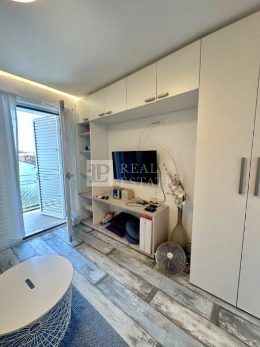 Kuća se prostire na tri etaže. Na donjoj etaži se nalaze kuhinja, blagovaona, dnevni boravak, WC i spremište. Na srednjoj etaži su dvije spavaće sobe, od kojih jedna ima izlaz na terasu te kupaonica. Na gornjoj etaži nalazi se potpuno uređeni studio apartman s balkonom iz kojeg se pruža pogled na more.