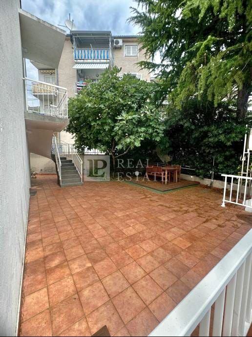 Unutar okućnice od 160 m2 smjestila se velika terasa s vanjskim tušem i dva vrta.