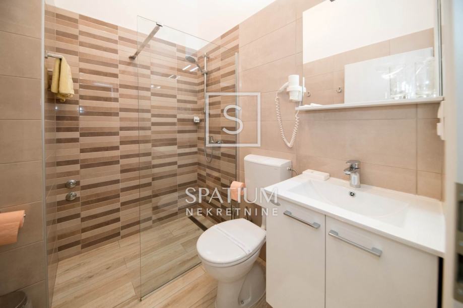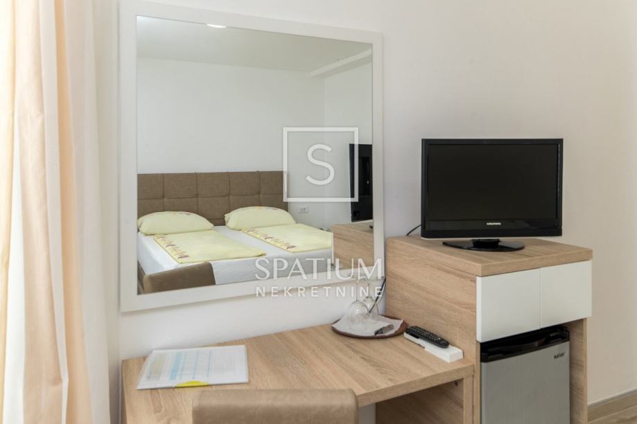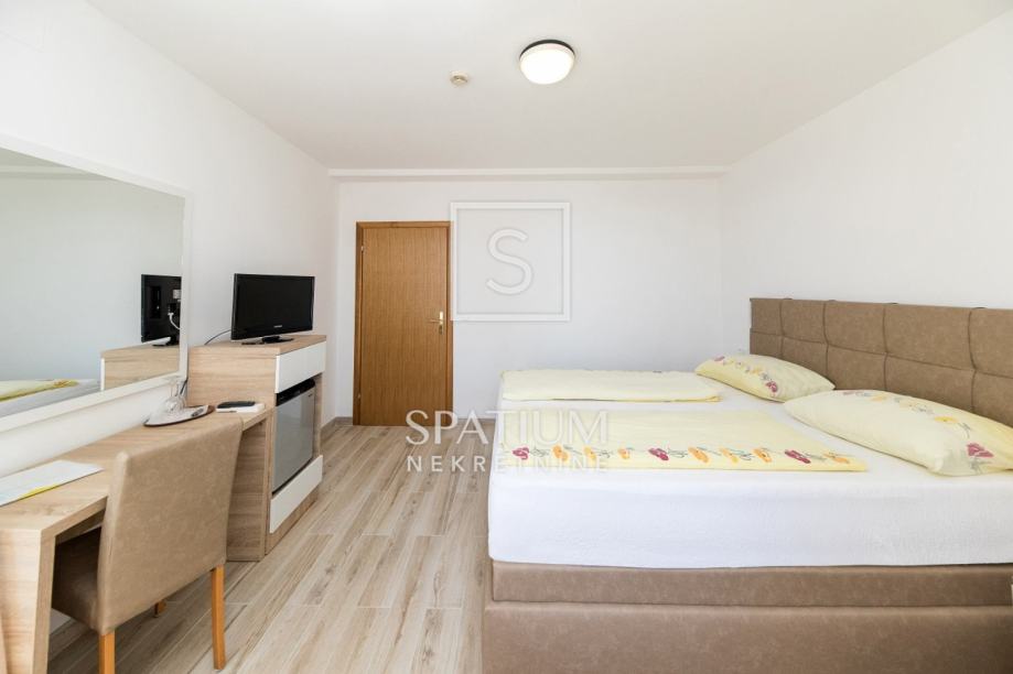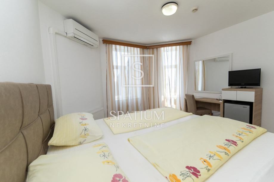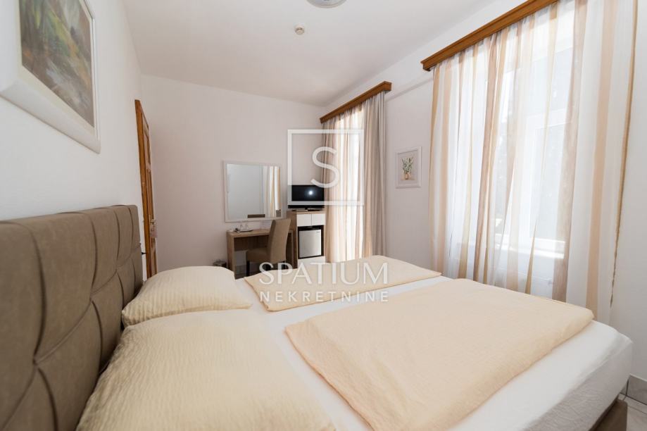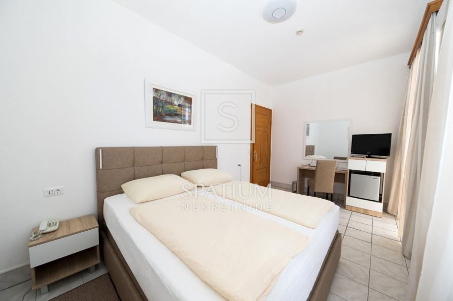 SELCE, u ponudu smo dobili hotel površine 619.56 m2 u centru grada, smješten na frekventnoj lokaciji svega 45 metara od mora, prostire se na 880.92m² okućnice, trenutno je kategoriziran s tri zvjezdice. Raspolaže s ukupno 75 ležaja, raspoređenih u 24 standardnih soba sa kupaonom, jednim apartmanom i dvije prostrane obiteljske sobe. Objektu pripada 15 vanjskih parkirnih mjesta sa natkrivenom garažom za dodatna dva automobila. Prizemlje čini prostrani restoran s kapacitetom od ukupno 350 unutarnjih i vanjskih mjesta. Na gornjoj vanjskoj terasi je sunčalište sa grijanim bazenom. Na vrhu objekta se nalazi koktel bar sa kojeg se proteže lijep panoramski pogled. Renoviran je 2018.god, te je sačuvan autentični mediteranski izgled. Zbog svoje bogate povijesti, i blizine samog mora i plaža ova nekretnina je idealna prilika za investitore kao i ulaganje u turizam.