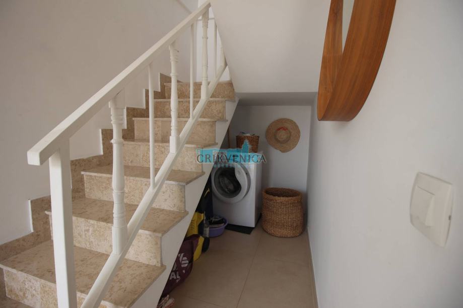 Prizemlje i 1.kat : u naravi dvokatni stan sa kuhinjom, 3 sobe, kupaonicom i velikom terasom. Uređeno sa mnogo autohtonih detalja.