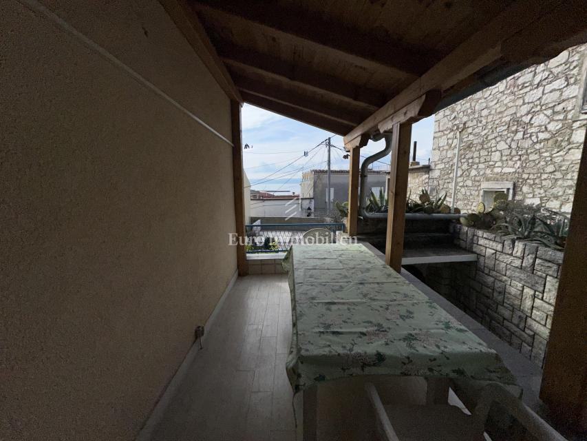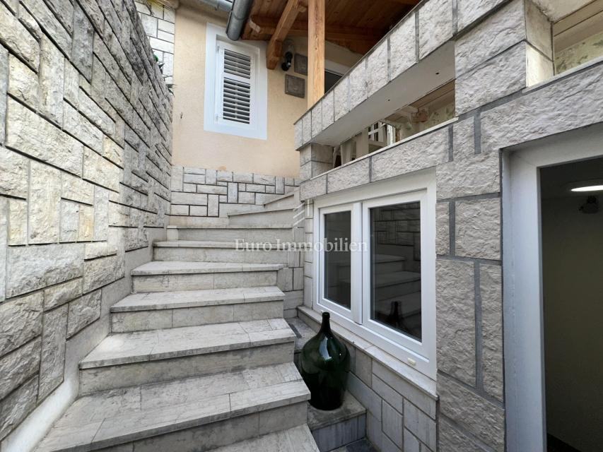 U prizemlju se nalaze konoba, ljetna kuhinja i kupaonica. Vanjskim stepenicama dolazi se na kat, gdje su smješteni dnevni boravak, odvojena kuhinja, kupaonica te prekrasna natkrivena terasa. Unutarnjim stepenicama dolazi se na drugi kat, gdje se nalaze dvije spavaće sobe, obje s komotnim balkonima s kojih se pruža lijepi pogled na more.