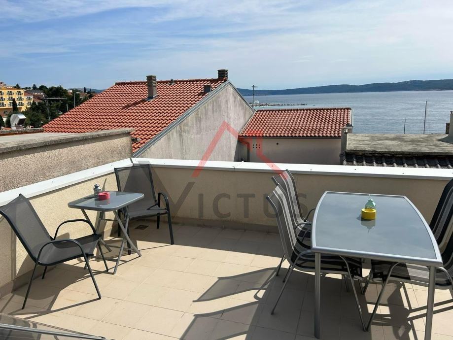 U prizemlju je smješten poslovni prostor od 40 m2. Na prvom katu se nalazi apartman s spavaćom sobom i jedna garsonijera. Na drugom katu se također nalazi apartman s jednom spavaćom sobom, kao i garsonijera. Iznad drugog kata je smještena prostrana krovna terasa s otvorenim pogledom na more i otok Krk.