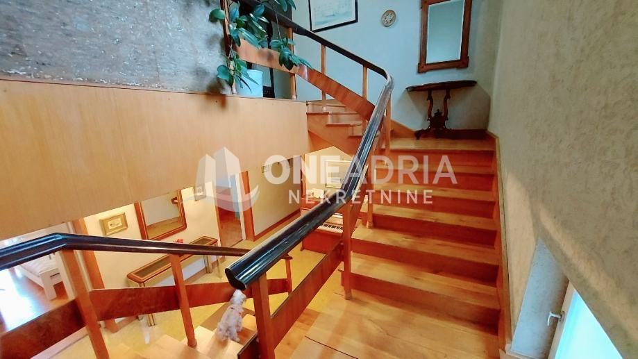U prizemlju su smještene garaže i spremišta, dok se na prvom i drugom katu proteže veliki obiteljski dvoetažni stan. Unutar prostrane okućnice nalaze se parkirna mjesta za više vozila, lijepo uređeni vrt te roštilj, a postoji i mogućnost izgradnje dodatnih sadržaja prema želji budućih vlasnika.